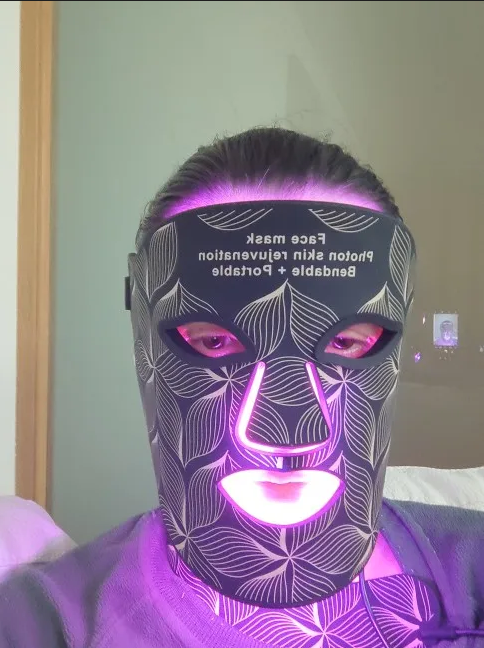 The Red Light Therapy Mask uses gentle, non-UV LED wavelengths that illuminate the skin during a short session.